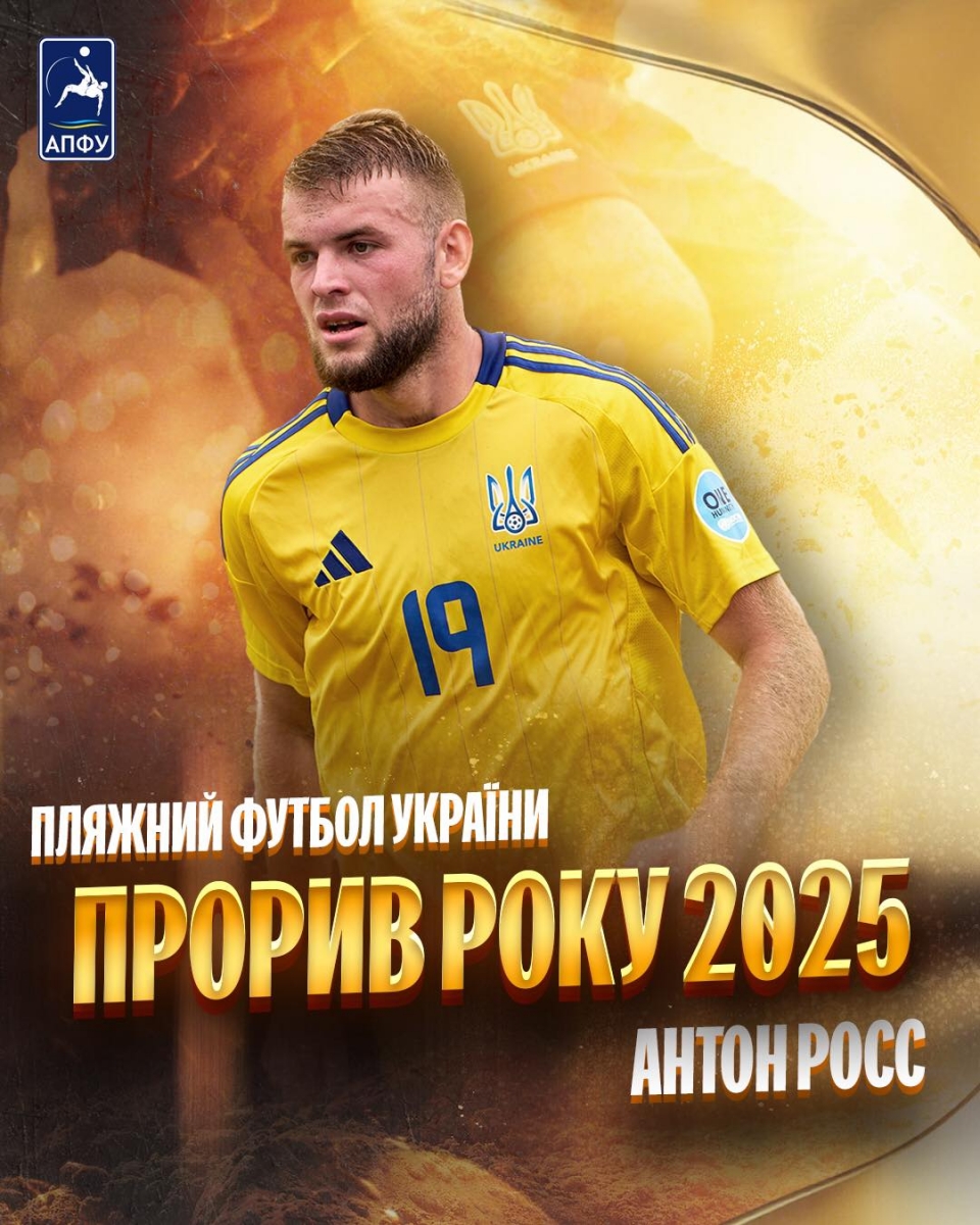 Асоціація пляжного футболу України започаткувала спеціальну нагороду за підсумками сезону - «Прорив року». Нагороду за підсумками пляжно-футбольного сезону 2025 отримає Антон Росс!